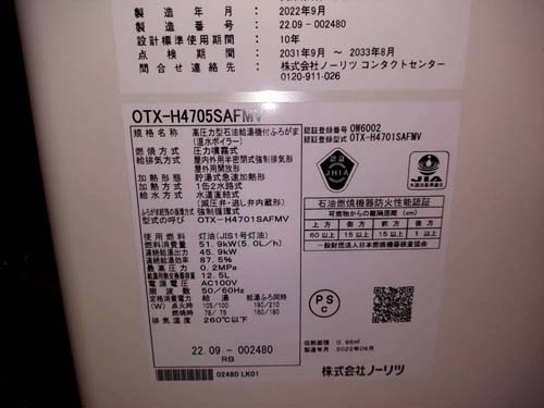宗像市桜町 ノーリツ給湯器OTX-311 FV→ノーリツ高圧力型石油給湯機付ふろがまOTX-H4705SAFMV 給湯器交換工事